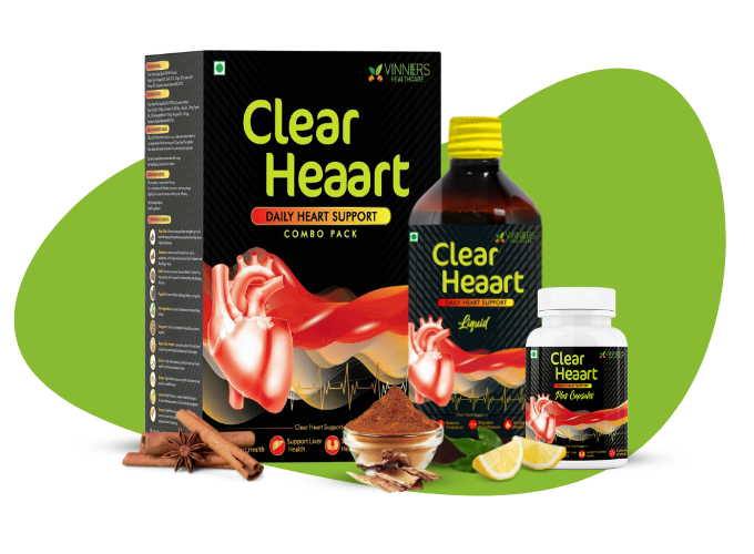 Helping Reduce Blockages, Cholesterol, and Triglyceride Levels, and Improves your Liver and kidney Functions. Reduce Tiredness, Chest Discomfort, Numbness, Weakness, and Shortness of Breathwitness. visible results in your heart health journey. Clear Heaart’s natural approach delivers noticeable improvements, ensuring a stronger, healthier heart.